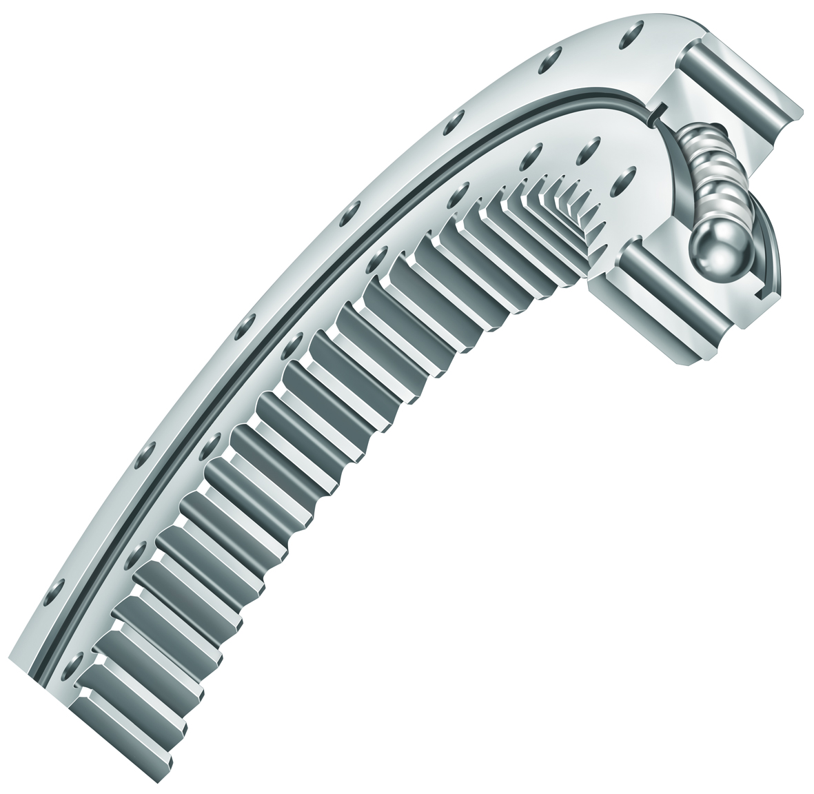 (3)使用過程中產(chǎn)生異響, (首先應(yīng)確定是否為回轉(zhuǎn)支承發(fā)出的響聲,有些鋼結(jié)構(gòu)或其他構(gòu)件發(fā)出的響聲,常會誤認(rèn)為回轉(zhuǎn)支承發(fā)出的響聲,因此,可采用停止回轉(zhuǎn)支承轉(zhuǎn)動,其他部件正常運轉(zhuǎn)來判別響聲來源)有以下幾種原因:滾道內(nèi)缺少潤滑脂,滾動體與隔塊碰撞發(fā)出響聲,此種響聲及時注油后即可消除;滾道內(nèi)混有異物,如砂粒、鐵屑等,這種情況往往還常伴有轉(zhuǎn)動困難(一般此種情況在使用工況較惡劣的環(huán)境容易出現(xiàn))。同時還應(yīng)注意密封條是否破損;安裝螺栓松動,導(dǎo)致回轉(zhuǎn)支承彈性變形,變形位置產(chǎn)生負(fù)間隙等,排除以上情況,如回轉(zhuǎn)支承仍存在異響請聯(lián)系我公司售后服務(wù)部處理。